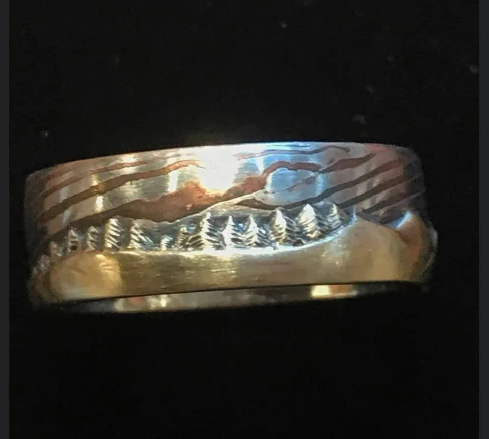 Mokume gane is an ancient Japanese technique for marrying precious metals. It is a process that takes patience and skill. Mokume gane means "woodgrain". It is a marriage of metals. Each piece is unique and one of a kind and can be made in a variety of colors of gold, silver and platinum. Call for a free consultation 360- 689- 2641